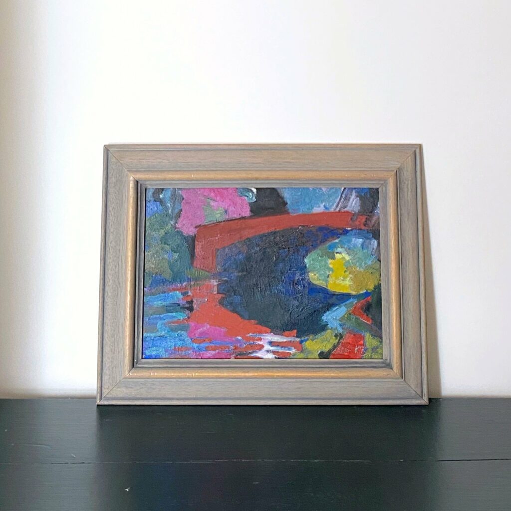 #037 Framed oil painting of red bridge