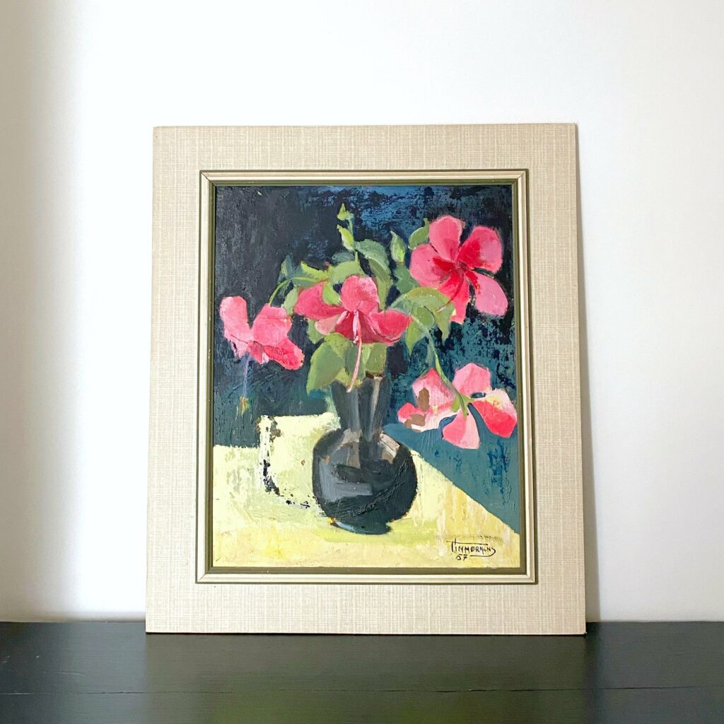 #038 Framed floral still life of pink flowers