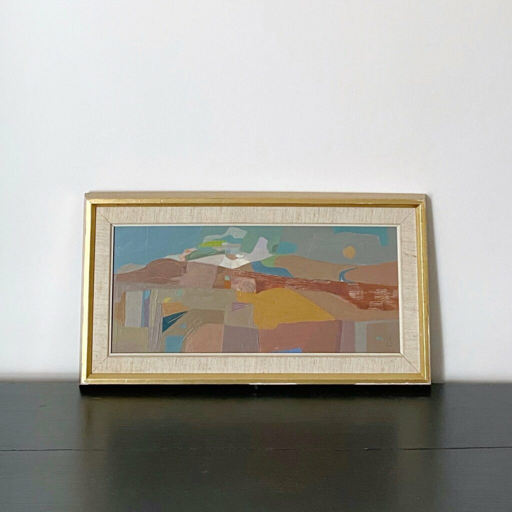 Framed, colourful abstract landscape Size: 45 x 34cm inc frame
