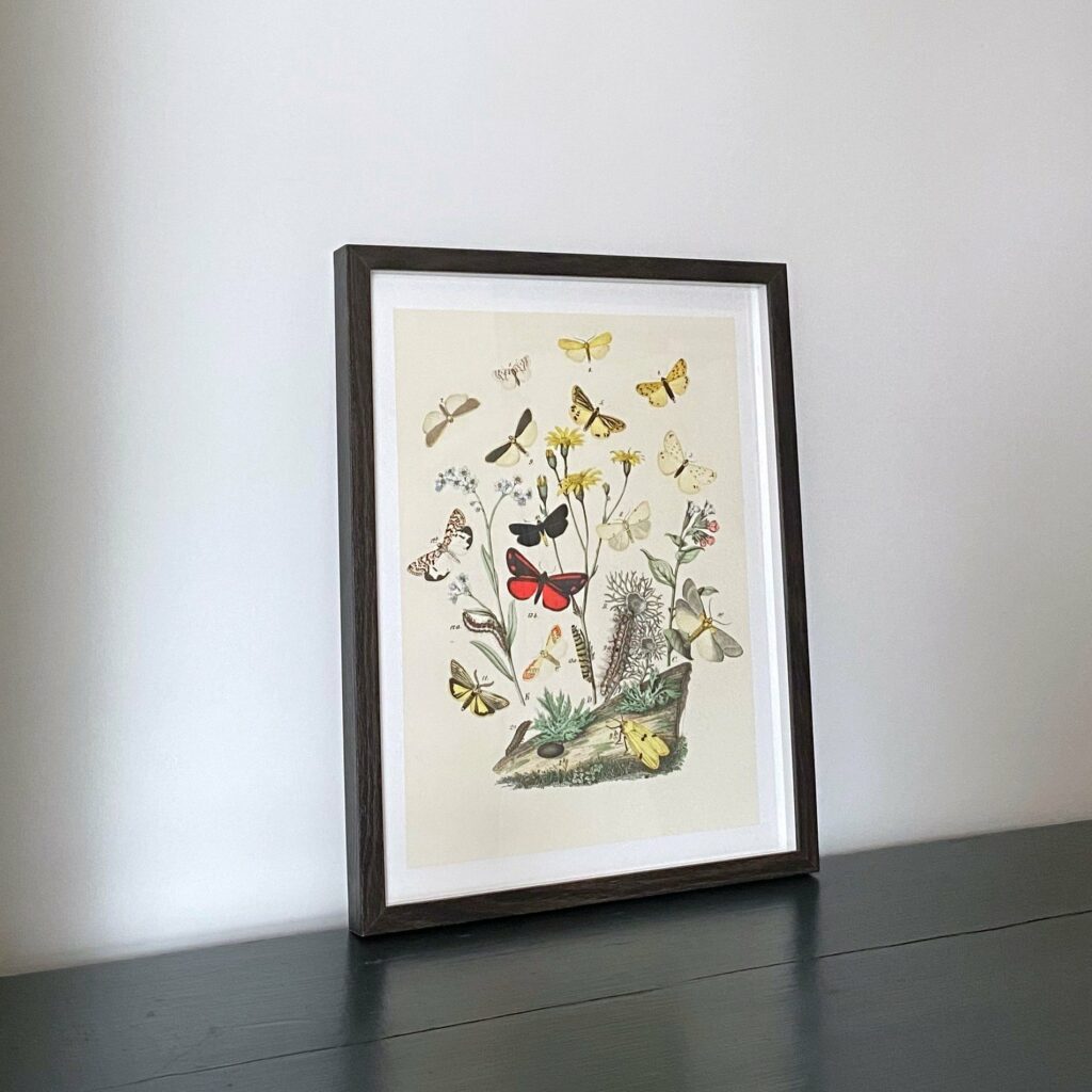 Framed butterfly print. Set of 3. Size: 32 x 42cm inc frame