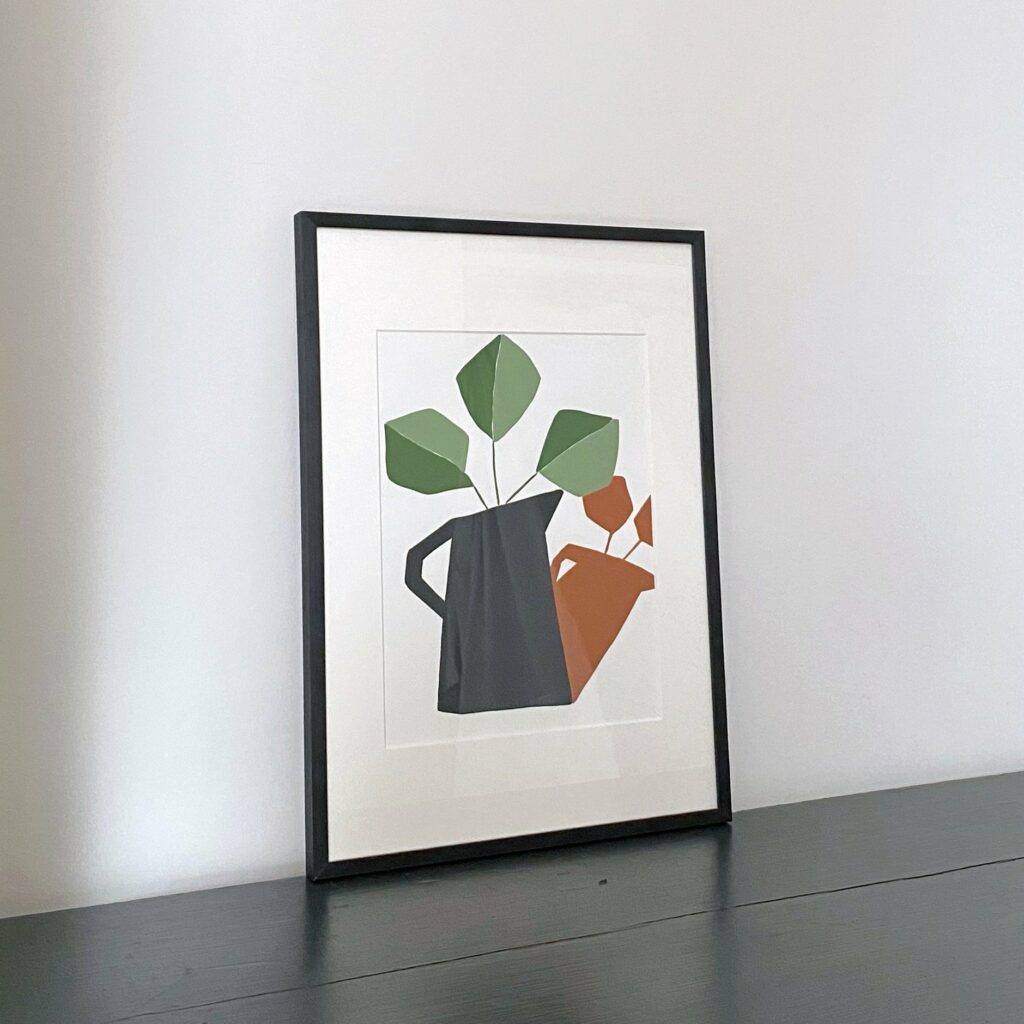 Graphic print of still life. Set of 3. Size: 31 x 43cm inc frame