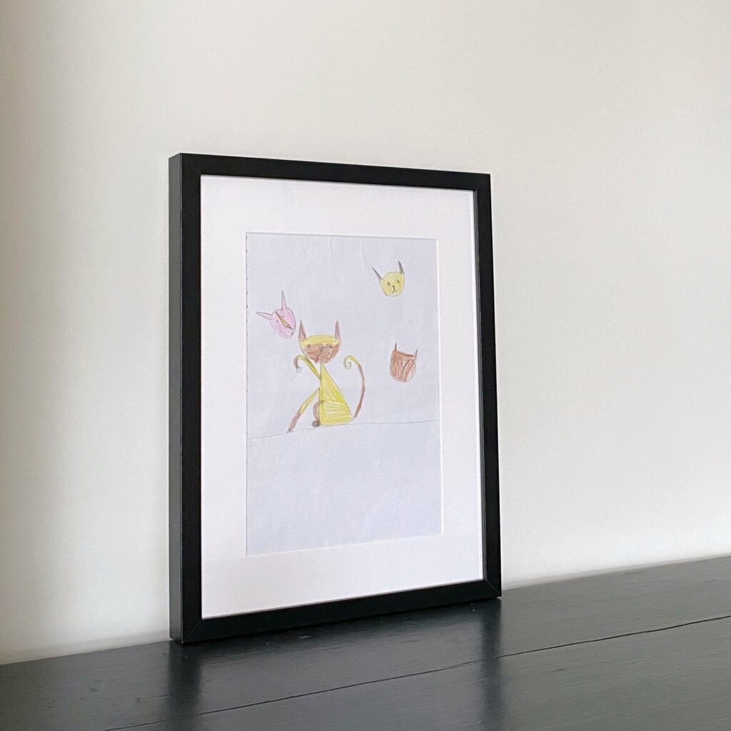 Crayon children's drawing of cats. Size: 33 x 43cm inc frame