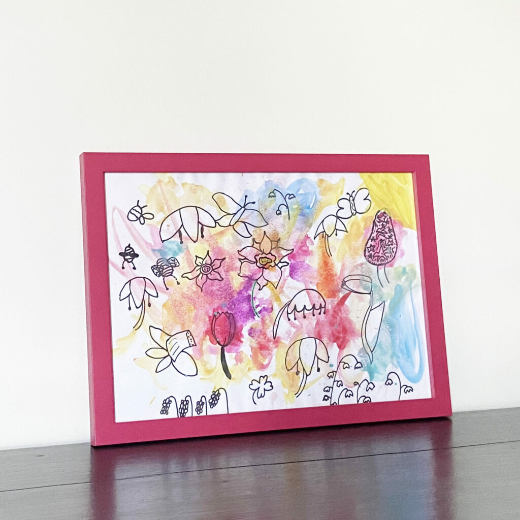 Child's Drawing of Flowers, set of 2. Size: 45 x 33cm.