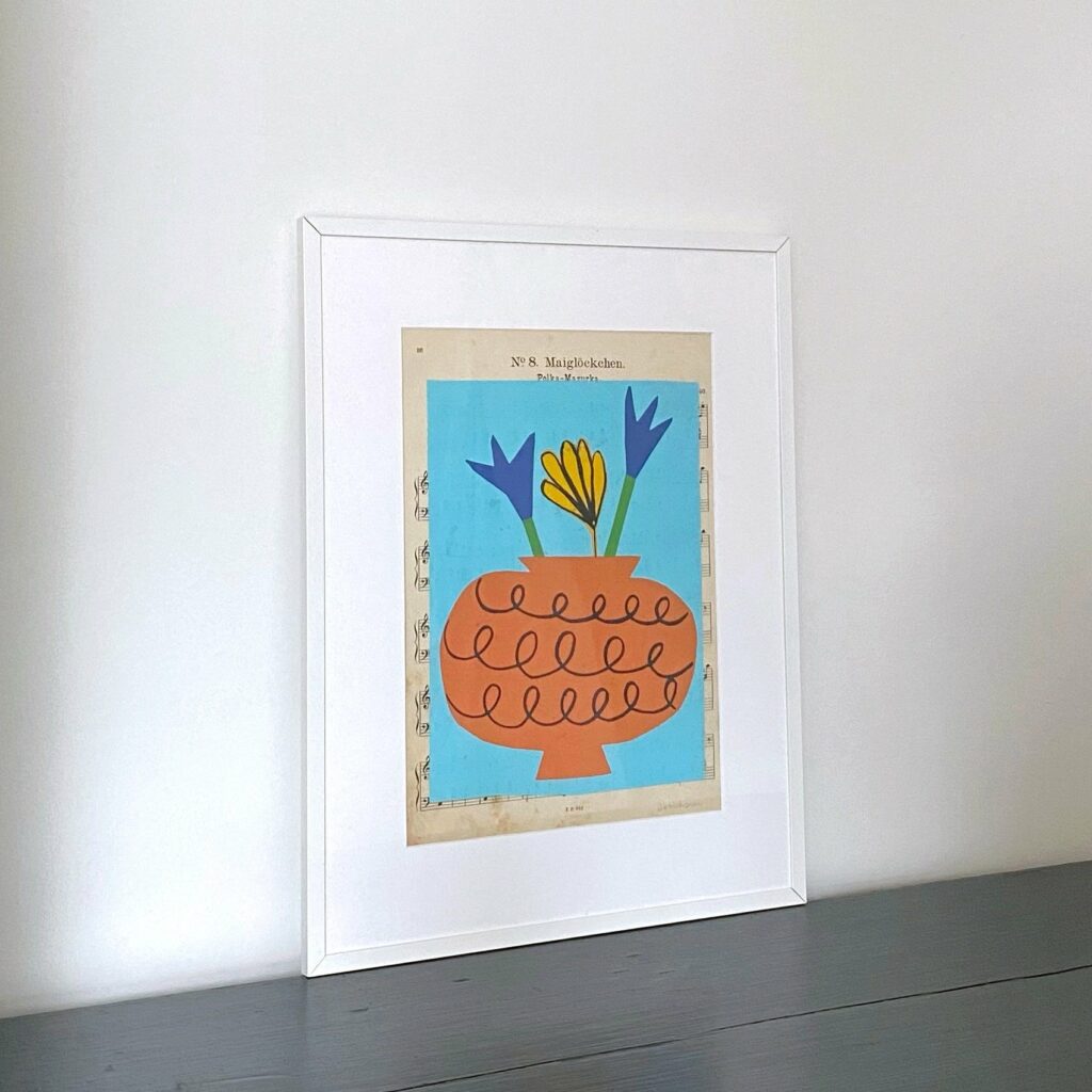 Silk screen print of flowers in vase. Set of 3. 32 x 42cm inc frame