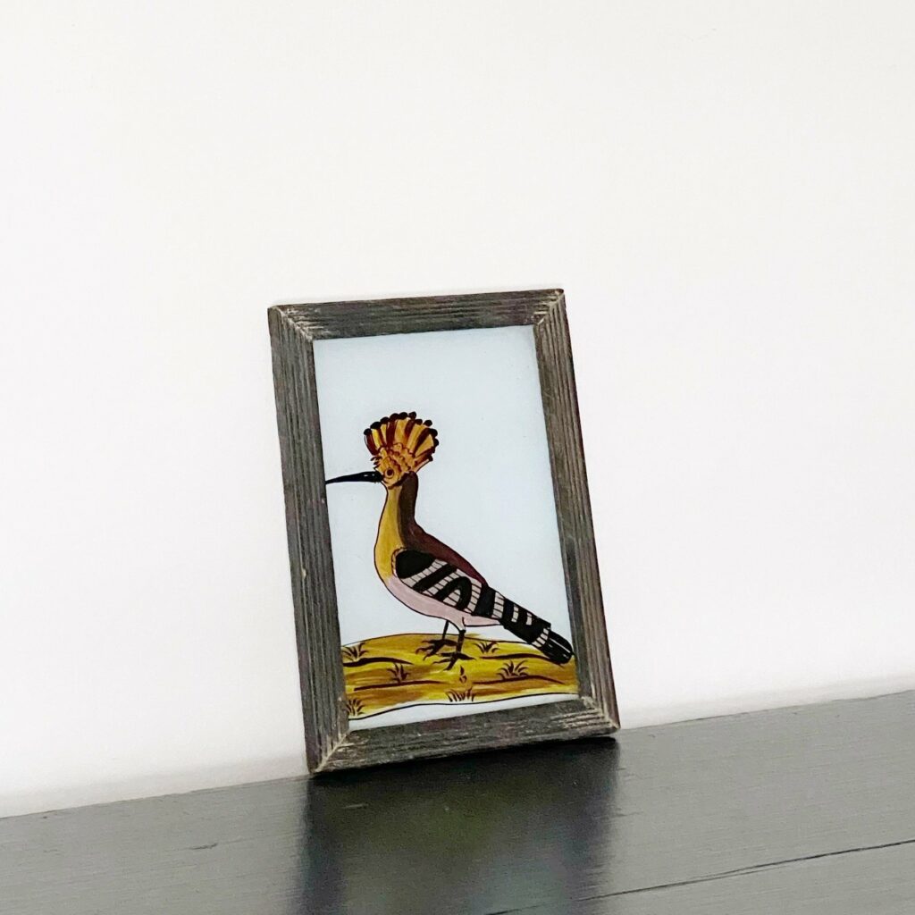 Indian reverse glass painting of bird, 1 of a set of 9 Size: 12 x 17cm inc frame