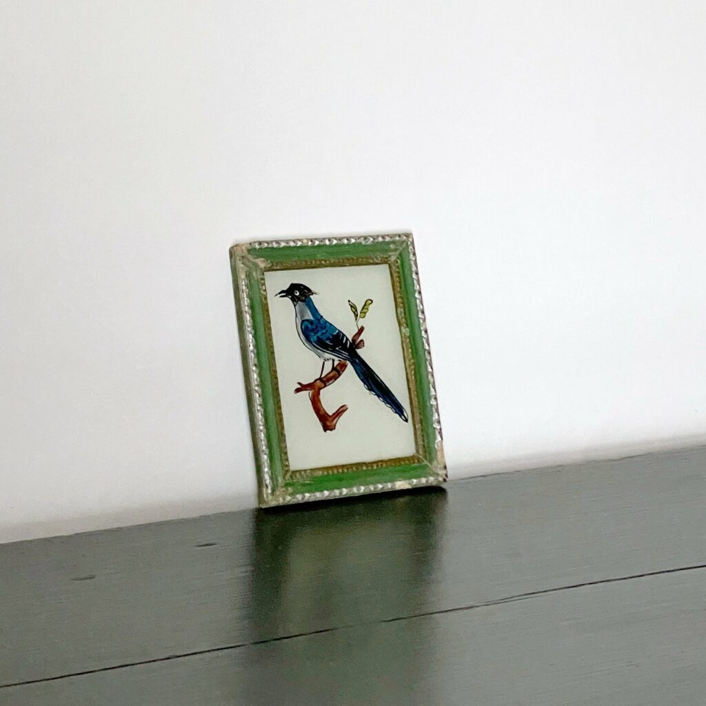 Indian reverse glass painting of a bird, 1 of a set of 9 Size: 10 x 12cm inc frame