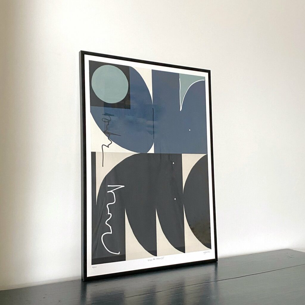 #173 Modern abstract print of blue and black forms, set of 3