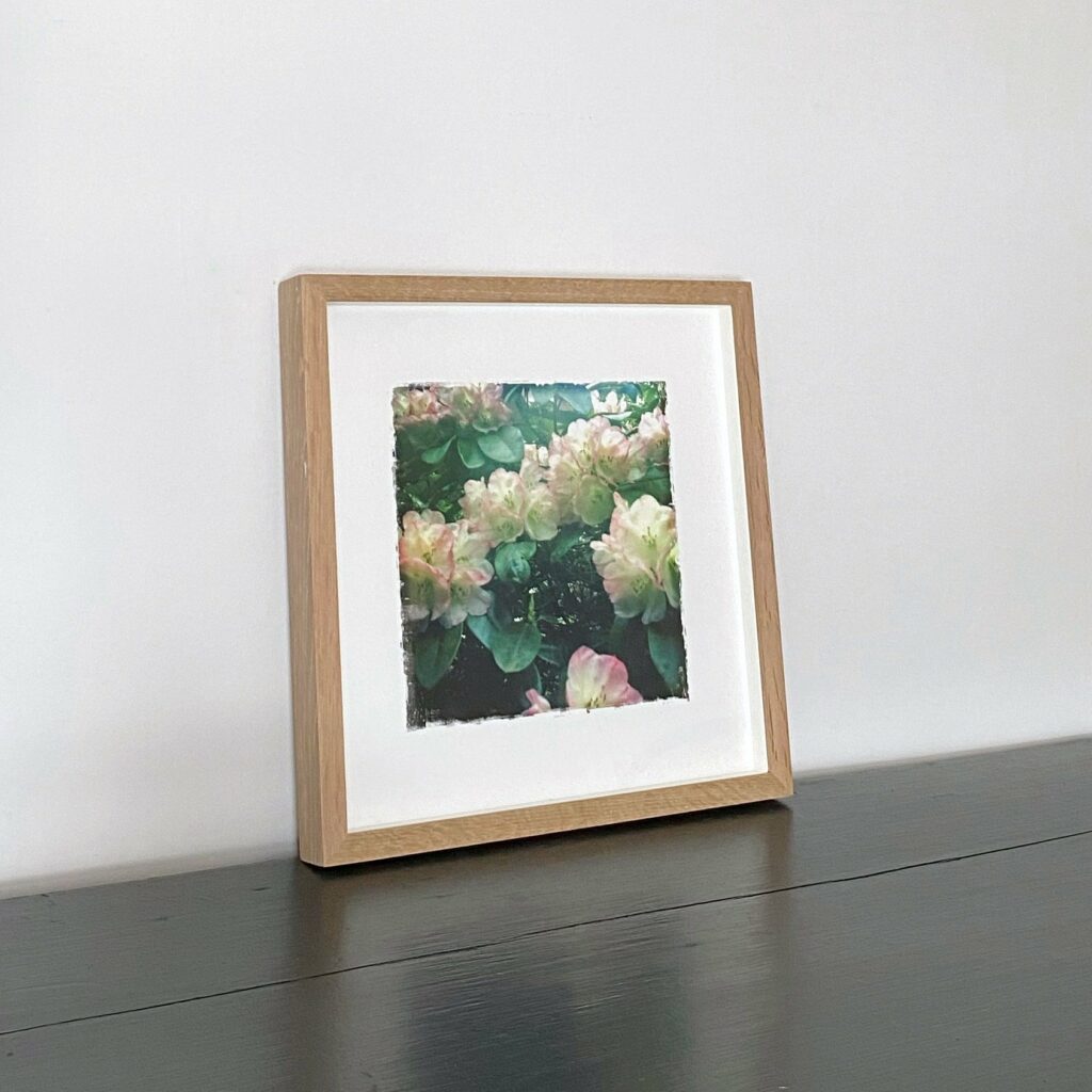 Photograph of flowers. Size: 32 x 32cm inc frame.