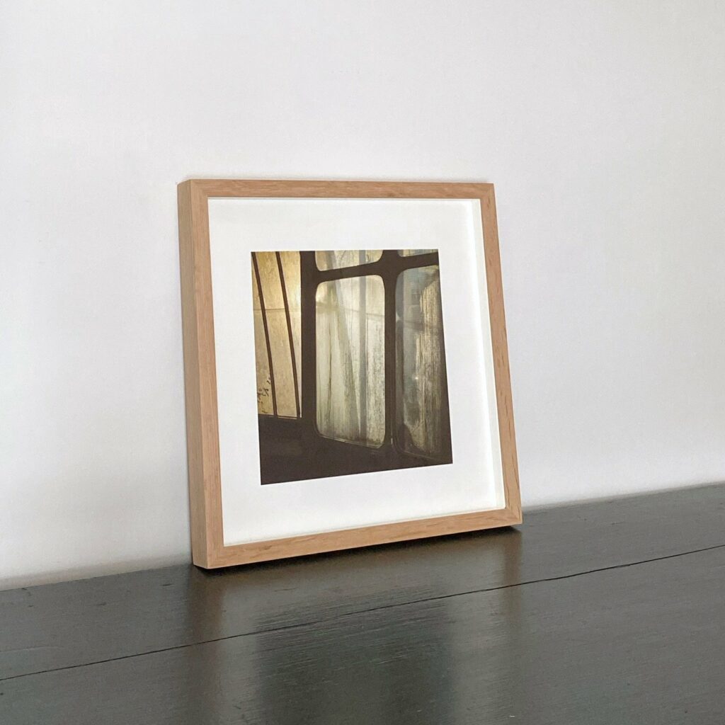 Light shining through stained windows. Size: 32 x 32cm inc frame.