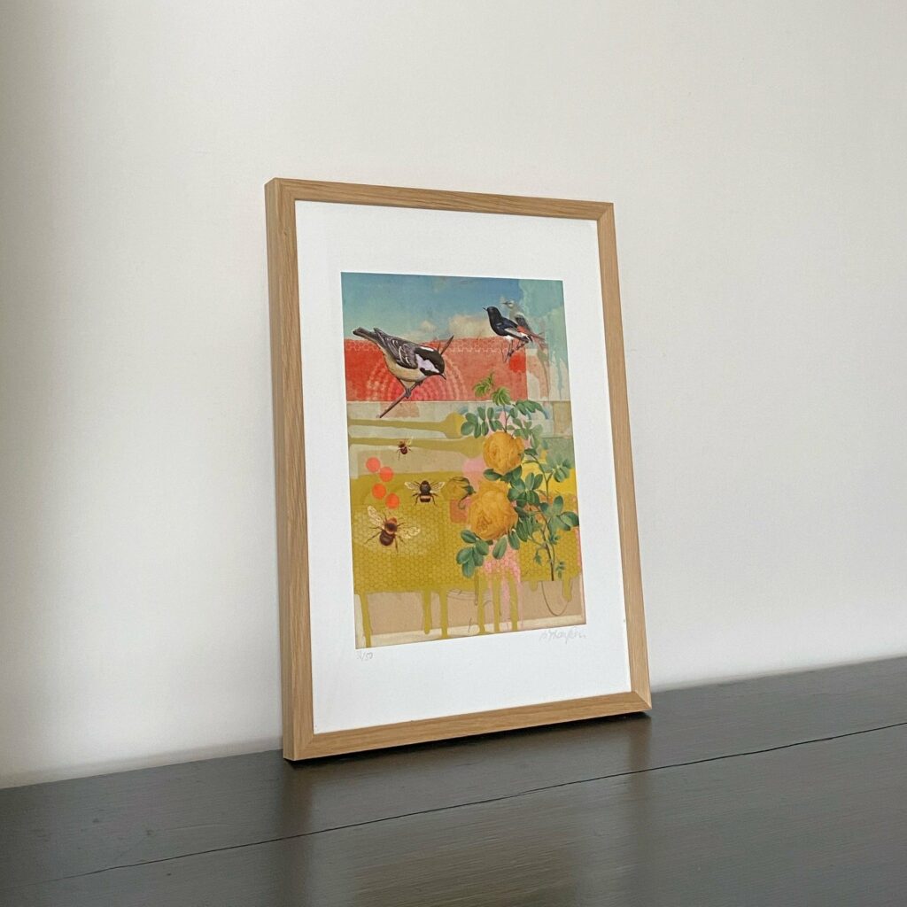 Birds and bees print, set of 3. Size: 32 x 44cm inc frame.