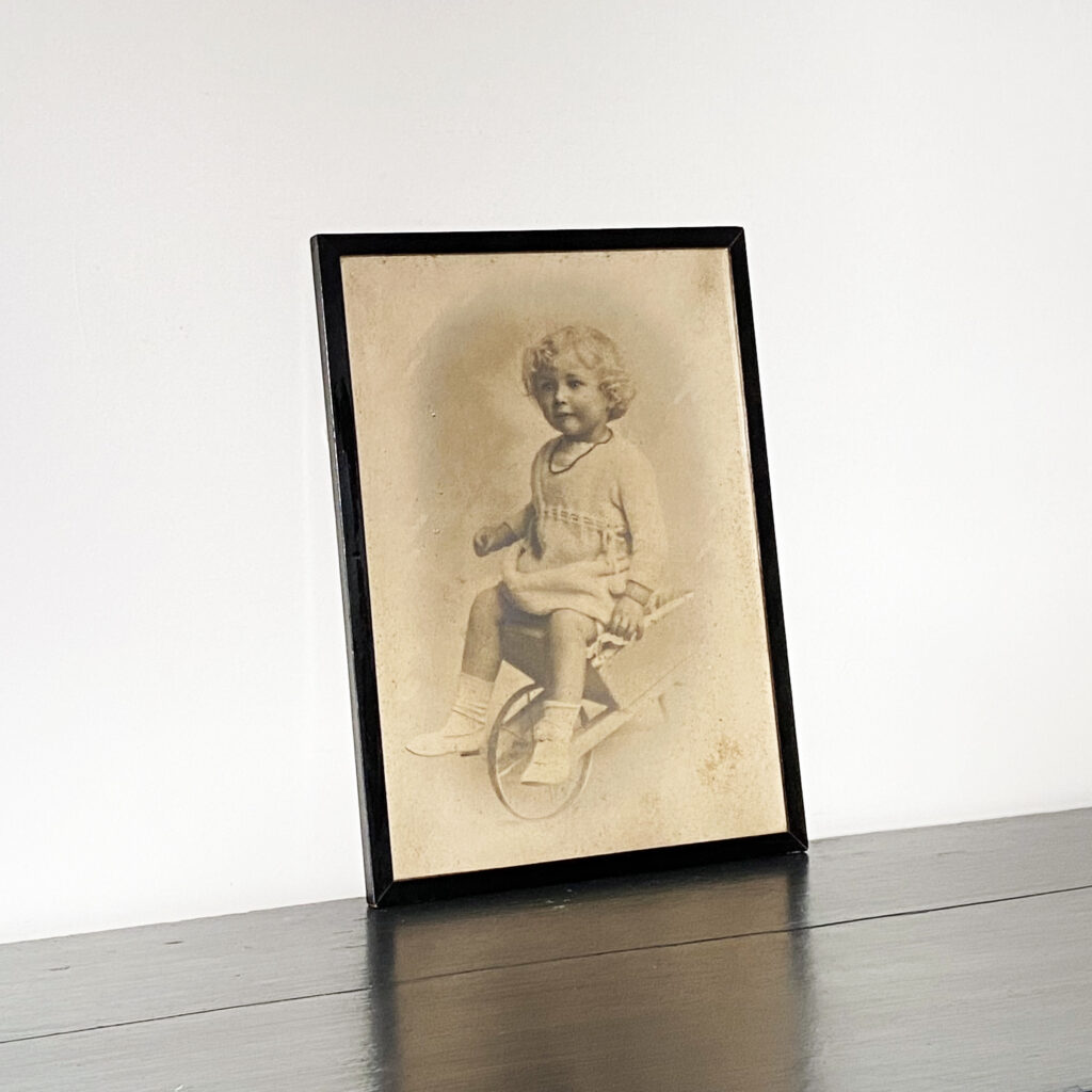 Victorian Photograph, Child On Wheelbarrow Size: 27 x 37cm