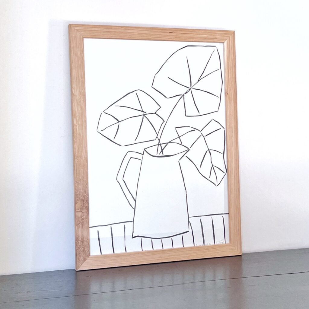 Line drawing of plant in a jug. Size: 46 x 34cm