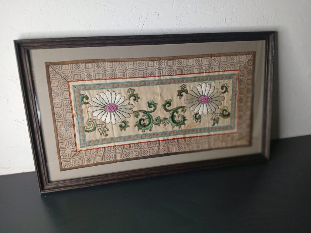 #508 Framed floral tapestry