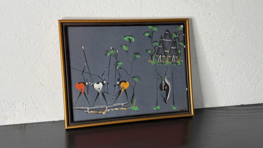 1960's African warrior ink drawing - Grey background. Size: 34 x 26.5. No license to use / license pending.